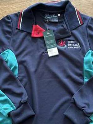 Xtra/other items John Palmer Public School Colour: Green and navy blue Size: 8 Type: Long sleeve polo for winter |
