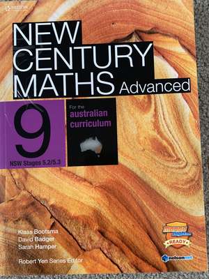 Maths Edition: 1st Edition Author: Klaas Bootsma, David Badger and Sarah Hamper Title: New Century Maths Advanced 9 |