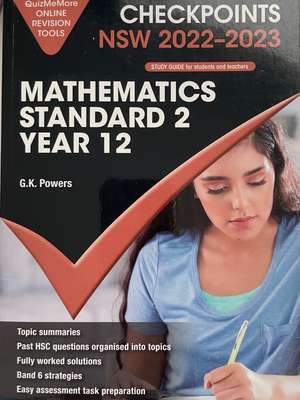 Maths Author: G.K. Powers Title: Cambridge Checkpoints Maths Standard 2 Yr 12 NSW 2022-2023 |
